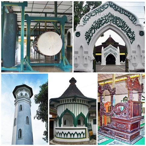 Satu tulisan kaligrafi yang termaktub di tiang sokoguru adalah sebuah nukilan hadits Nabi saw. yang berbunyi, “Siapa yang membangun masjid ini untuk Allah maka Allah akan mendirikan sebuah rumah di surga kelak.”