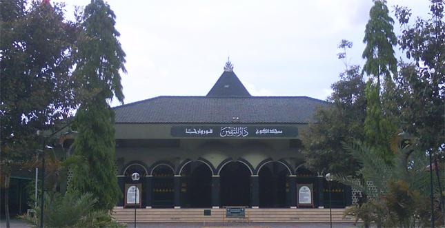 Adapun untuk induk bangunan masjid, menurut kitab Kaiveruh Kalang, mengambil Tajuk Lawakan Lambang Teplok. Sedangkan, untuk bangunan serambi masjid bertipe limasan trajumas. Kalau kita masuk ke dalam bangunan induk, di sana terdapat mihrab yang pada lengkung- annya bergambar Sangkalan Memet yang berbentuk ranting pohon srikaya dengan daun dan buahnya, yang kalau dibaca berbunyi “Pang Pinajang Srikaya Sagodhonge”.