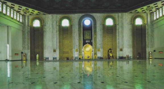 Keistimewaan lainnya adalah mihrab yang terbesar di Indonesia. Mihrab terletak tepat di tengah dinding depan ruang utama, berbentuk relung dengan pigura berbentuk persegi panjang menjulang tinggi dan setengah lingkaran di atasnya.