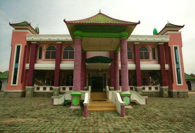 Gaya khas Cina lainnya dapat dilihat pada bentuk dua menara di kedua sisi bangunan. Dengan model pagoda, menara tersebut cukup mewakili karakter Cina yang ingin ditampilkan. Namun, bangunan utama yang berbentuk persegi secara keseluruhan tidak banyak memainkan detail ornamen khas Cina. Bangunan itu terlihat cukup minimalis namun membentuk komposisi yang padu. Sebuah kubah bulat melancip berlapis warna hijau memperlihatkan pengaruh Timur Tengah pada masjid.