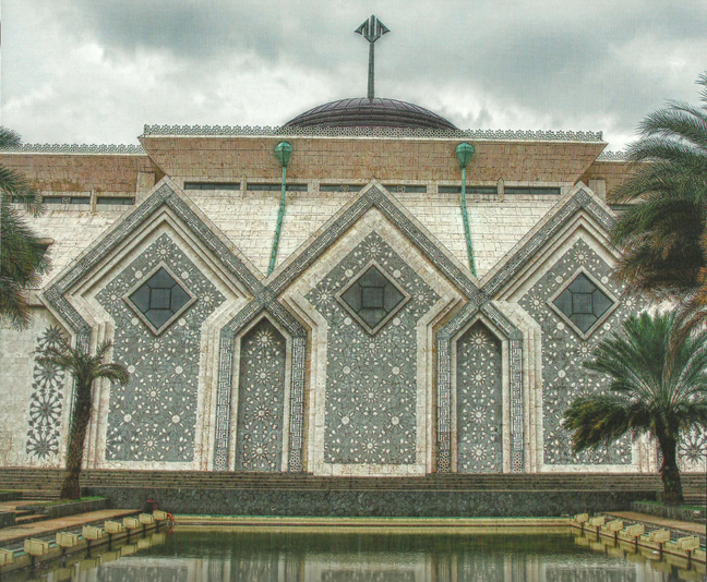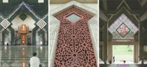 Bentuk panah ke atas tersebut juga terlihat di beberapa ornamen bangunan, antara lain hiasan kaca patri yang menyebar di dinding masjid hingga aksen dinding luar. Panah ke atas ini bermakna hubungan antara manusia dengan penciptanya, mengingatkan manusia untuk selalu bersyukur atas nikmat dan berkah yang telah dilimpahkan oleh Allah Swt.