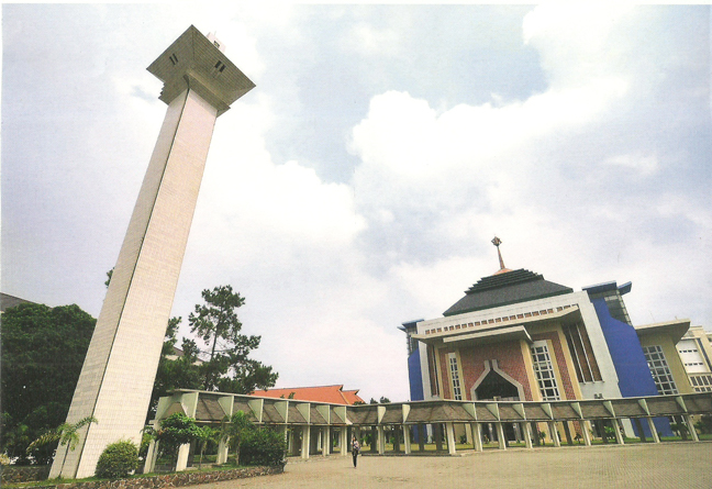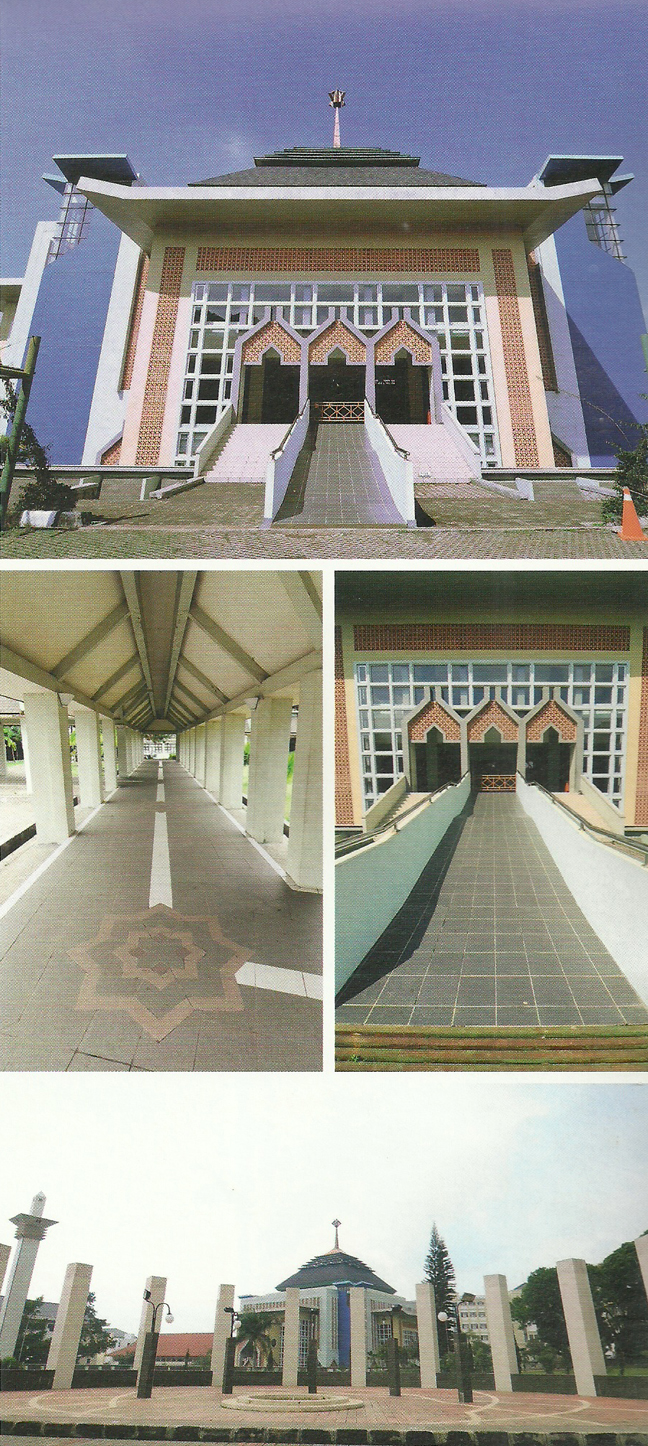Bangunan masjid yang tinggi besar dan terletak tepat di sisi sebelah kiri gerbang utama UPI menjadikan masjid ini langsung terlihat dari jalan di depan kampus. Penempatan masjid di halaman depan kampus tersebut seakan-akan menjadi pengucap selamat datang kepada siapa pun yang memasuki area kampus. Sambutan ini terasa kian hangat karena di sekitar masjid terdapat taman yang asri dengan elemen lampu hias. Lambat laun, bangunan masjid pun menjelma menjadi simbol kampus itu sendiri.