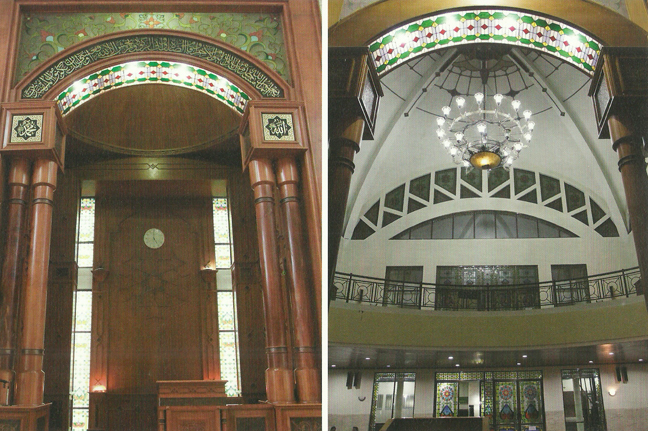Di bagian depan ruang utama terdapat mihrab yang juga terbuat dari kayu. Mihrab ini dihiasi dengan kaligrafi QS. At-Taubah: 3. Ruang utama sendiri terdiri dari dua lantai. Lantai atas digunakan khusus untuk wanita.
