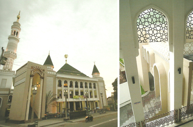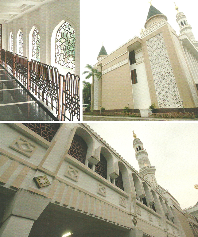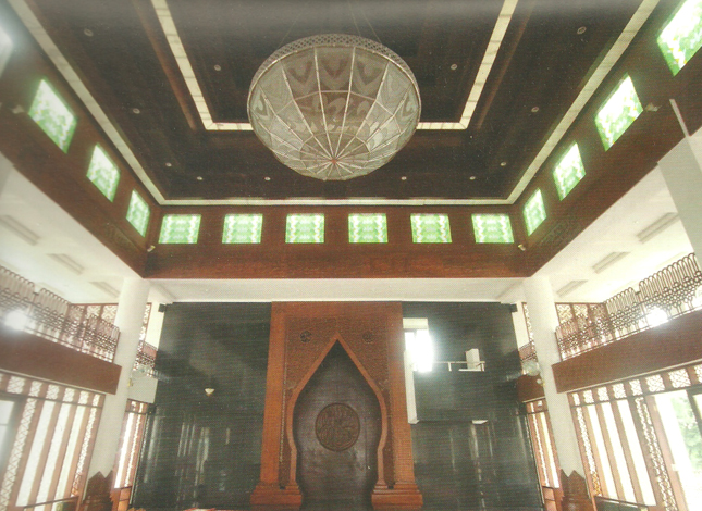 Nuansa Nusantara, khususnya Jawa, tampak pada bentuk atap limas yang merupakan ciri khas masjid Nusantara. Demikian pula detail ornamen bermotif Jawa serta kaligrafi bertuliskan nama- nama sahabat Nabi Muhammad Saw. dan Wali Songo yang diukir pada material kayu.
