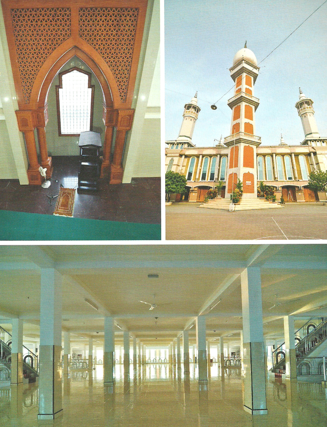Keunikan masjid ini ialah keberadaan lima buah menara sebagai simbol rukun Islam. Empat menara menyatu dengan bangunan utama sebagai pendamping kubah. Satu menara lagi terletak tepat di hadapan bangunan utama dengan puncak berbentuk bulat telur, berbeda dengan empat menara lainnya.