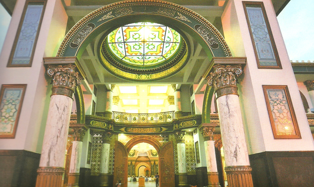 Dari seluruh keindahan tersebut, harus diakui bahwa yang paling menyita perhatian adalah plafon yang mengikuti bentuk kubah. Goresan khas garis-garis tribal terlihat sangat kontras dengan lampu gantung kristal yang memberi kesan mewah.
