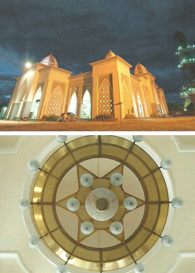 Saw. untuk berdakwah. Tiang mimbar menggunakan ragam hias ukiran segi lima dan motif bunga yang juga berjumlah lima buah. Angka lima ini menyimbolkan lima kerajaan yang ada di Gorontalo.