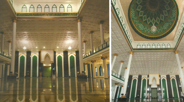 Selain empat menara kembar-dua di antaranya berada di lautan- berketinggian 45 meter yang disesuaikan dengan tahun kemerdekaan Indonesia, masjid ini memiliki sebuah kubah raksasa.
